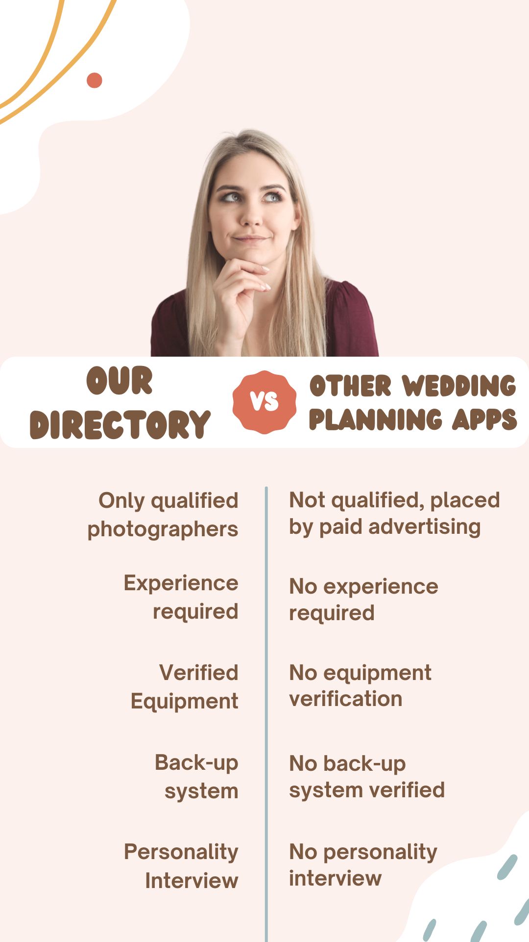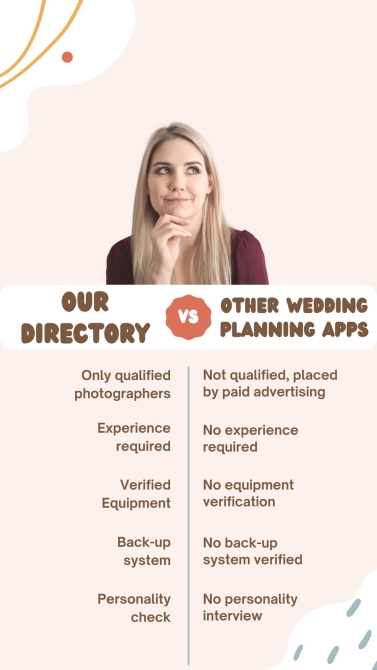 Step into a world of wedding photography like no other! This is the first-ever directory built solely on exceptional talent. While most directories and apps push photographers based on paid advertising, we've flipped the script with a 22-point qualification system. Here, it’s all about skill, not sponsorship. Our platform showcases only the most qualified wedding photographers—evaluated on their equipment, stunning portfolios, and professionalism on the big day.